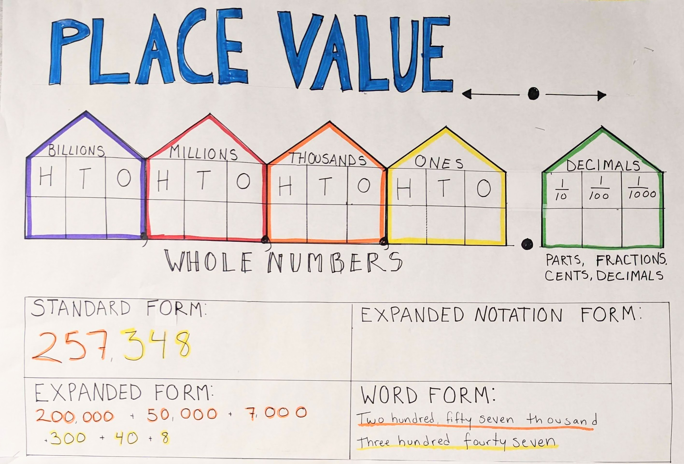 4 NBT A.2: Read and write multi-digit whole numbers using base-ten numerals, number names, and expanded form. Compare two multi-digit numbers based on meanings of the digits in each place, using >, =, and < symbols to record the results of comparisons.