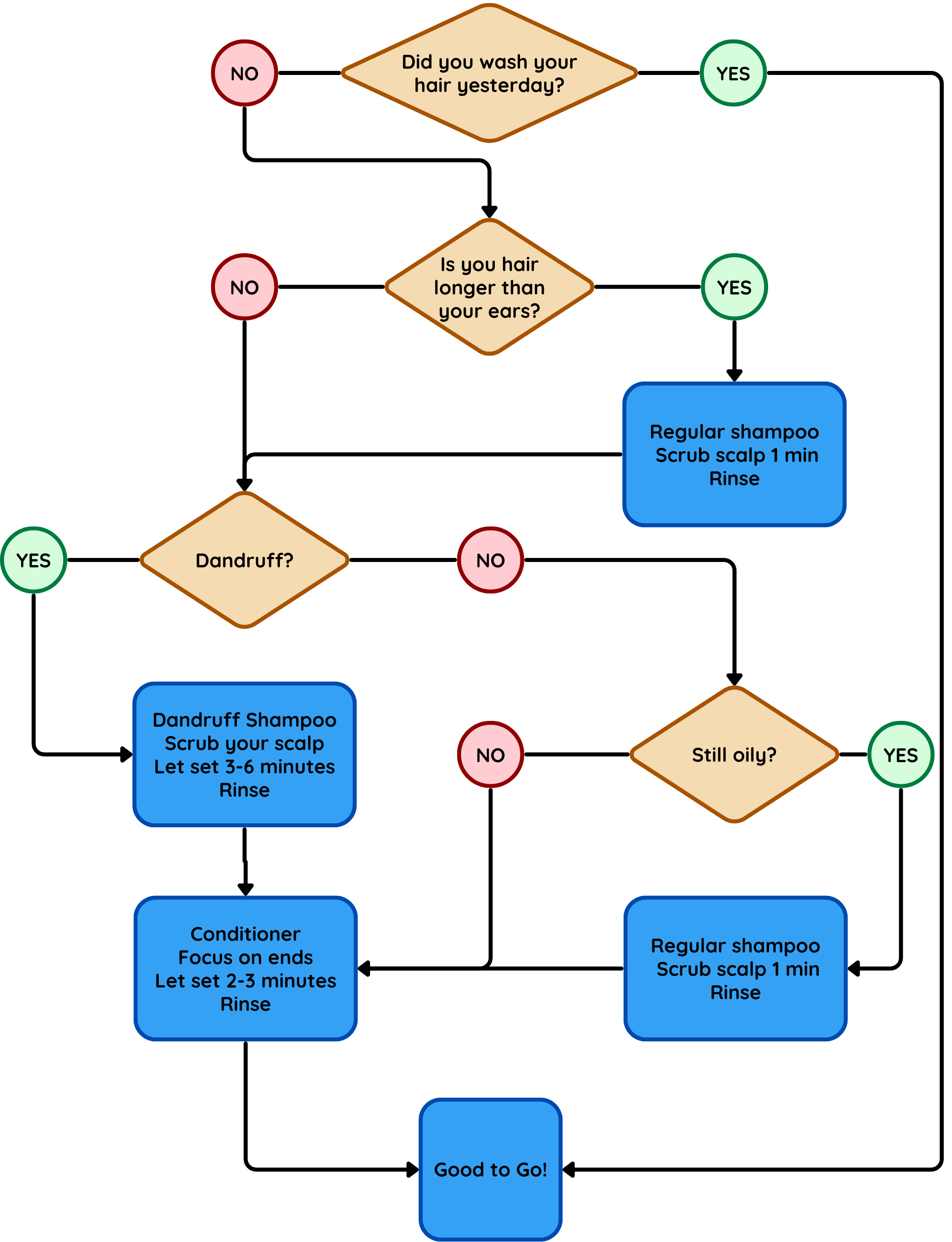 The student’s parents were concerned about the student’s lack of self sufficiency with hair hygiene. To address this, I created a hair-washing decision tree for the student to follow. The decision tree was printed out, laminated, and placed in the student’s bathroom for easy reference. Additionally, the student was also given a 3 minute sand timer to use for reference. According to anecdotal evidence from parents, they needed to intervene less in the student;s hair hygiene routine.