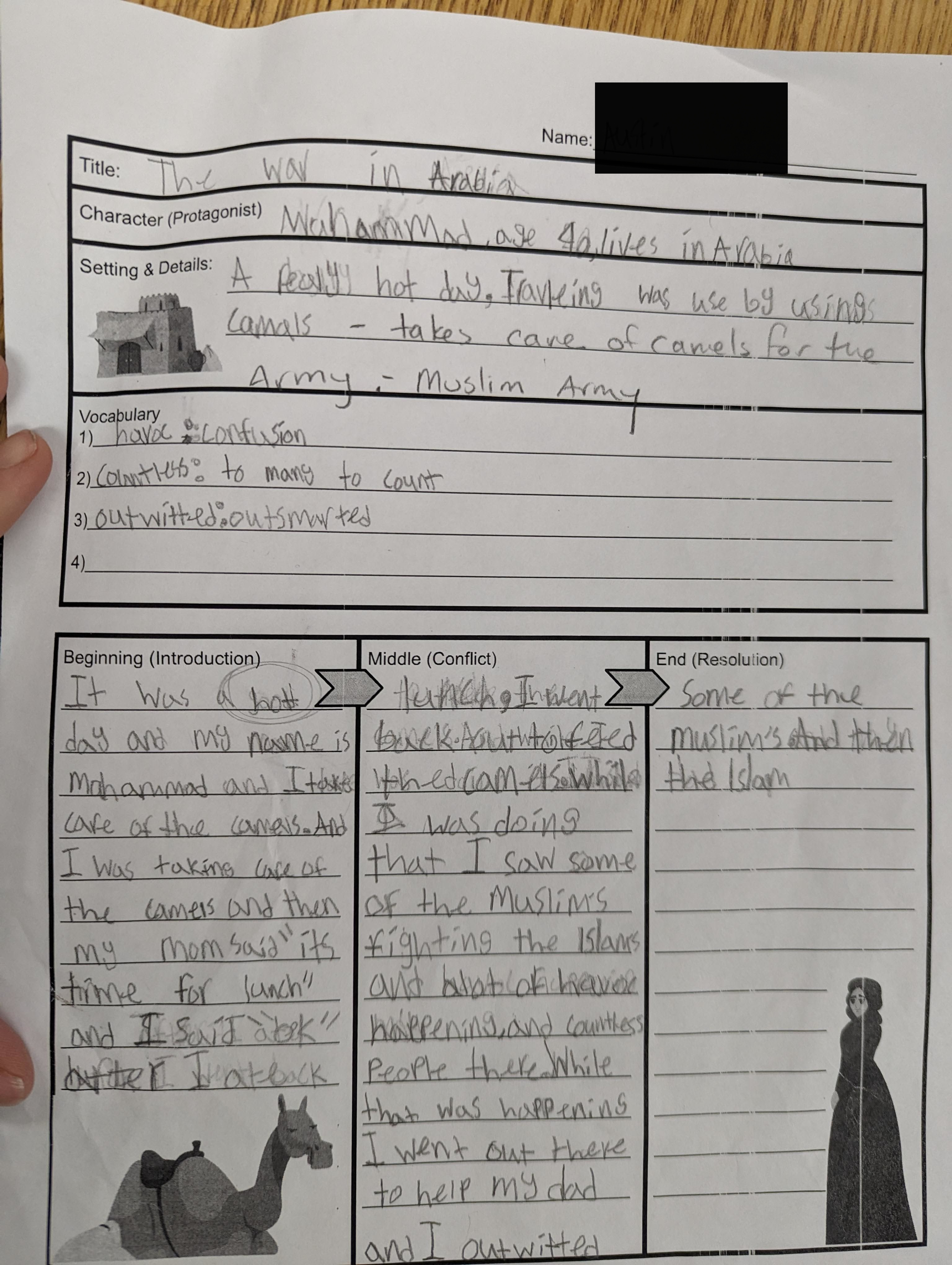 In response, we implemented a more structured approach to support students learning writing skills. We introduced anchor charts with story elements, employed a Cognitive Content Dictionary for vocabulary, and provided graphic organizers for pre-writing. Examples are attached below.